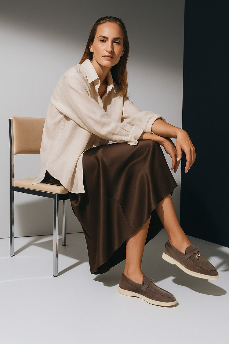 <tc>Loro Piana</tc> حذاء لوفرز صيفي للنساء من تشارمز ووك (جلد سويدي)
