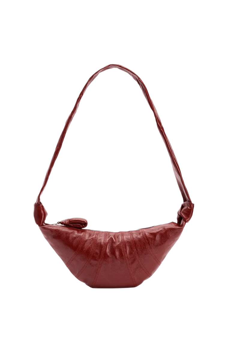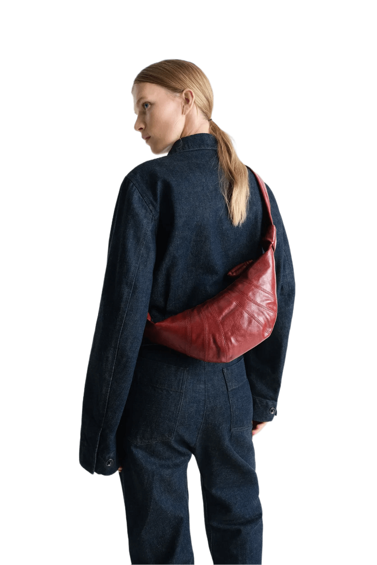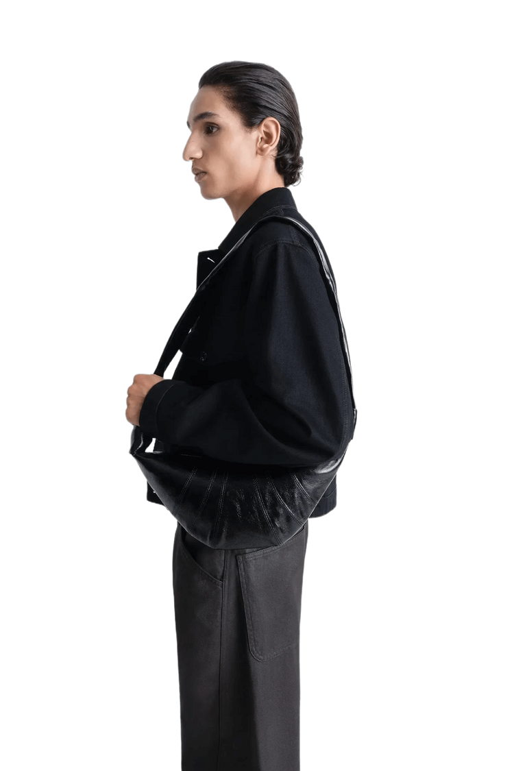 The Lemaire Unisex Small Croissant Bag is crafted from tanned leather that gracefully ages, offering a quiet luxury that evolves with you. Its sleek, semi-circular design and artisanal craftsmanship make it a versatile, timeless addition to your collection.