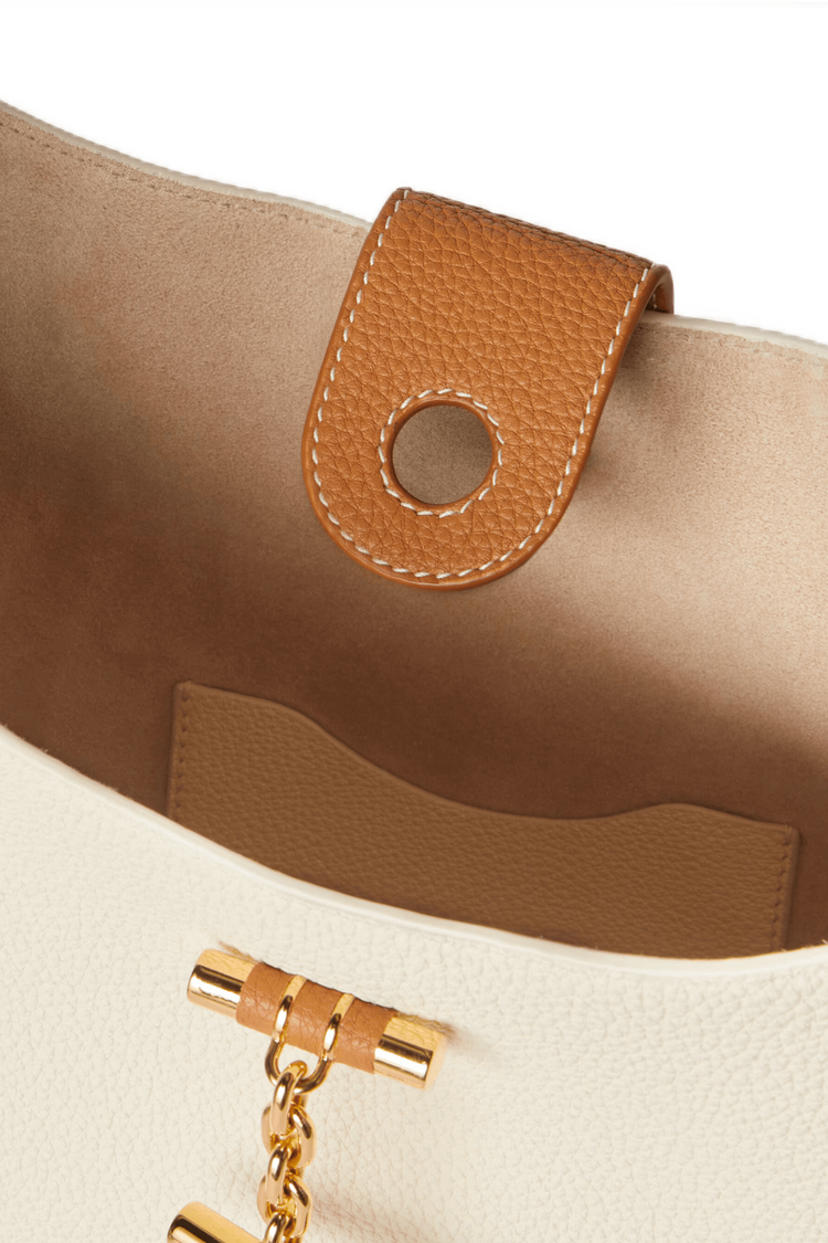 The Loro Piana Women’s Medium Bobbin Bag blends textile heritage with modern elegance, inspired by the spool of fabric craftsmanship and crafted in supple fine-grained leather with a polished toggle closure and signature handle detailing. Featuring an adjustable shoulder strap and a structured silhouette, it offers versatile sophistication for daily wear, embodying timeless luxury rooted in Loro Piana’s artisanal tradition.