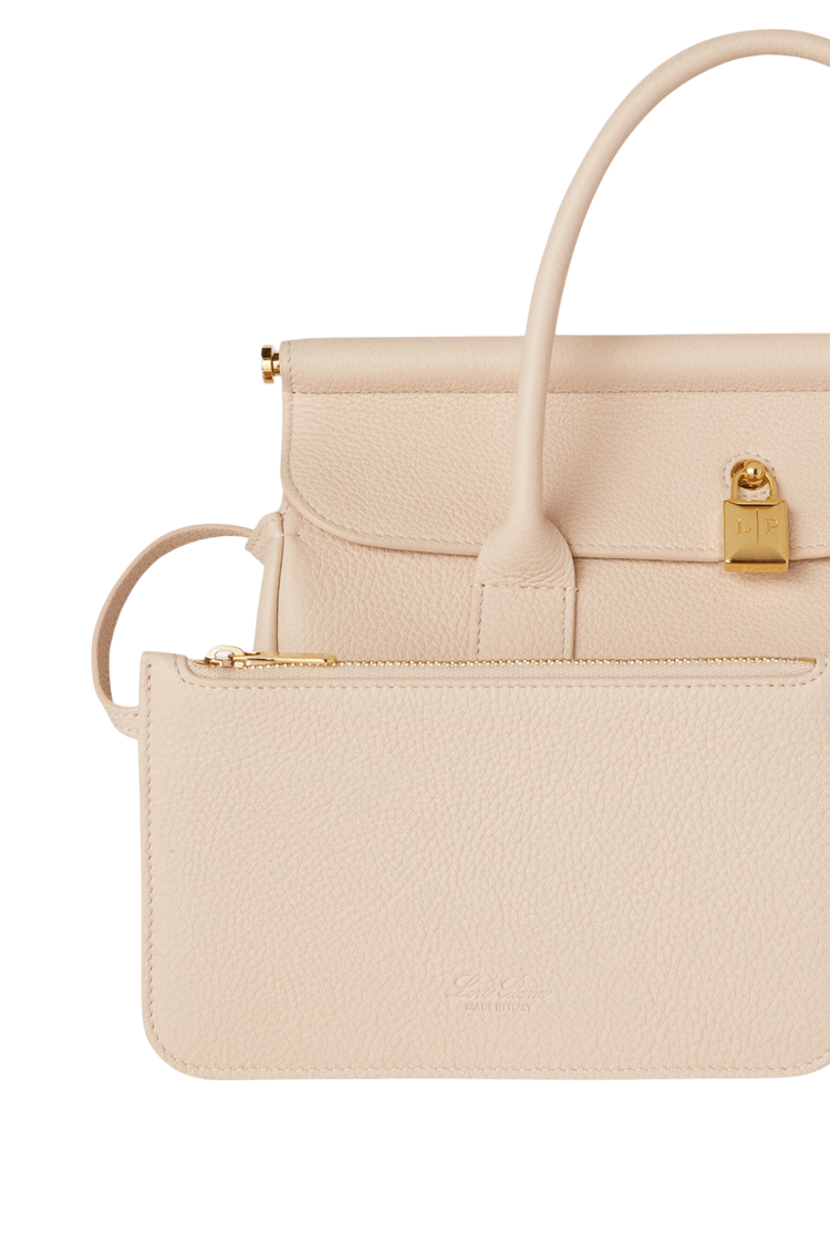 The Loro Piana Women’s Loom Bag L25 celebrates textile heritage with a sculpted metal bar evoking a weaver’s loom, crafted in featherlight fine-grain calfskin and a detachable padlock for versatile sophistication. Its supple silhouette transitions seamlessly from polished elegance to relaxed ease, embodying timeless craftsmanship and understated luxury as a modern heirloom.