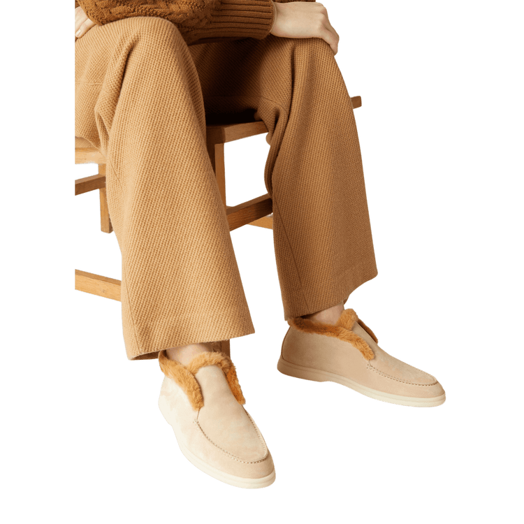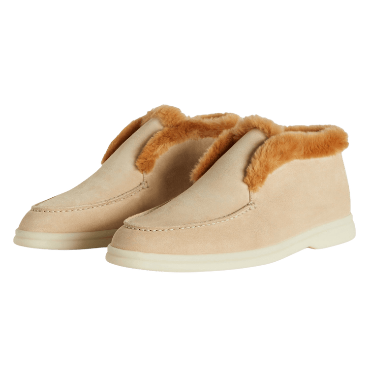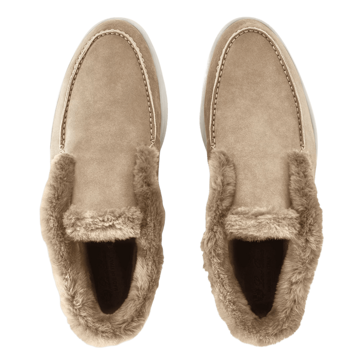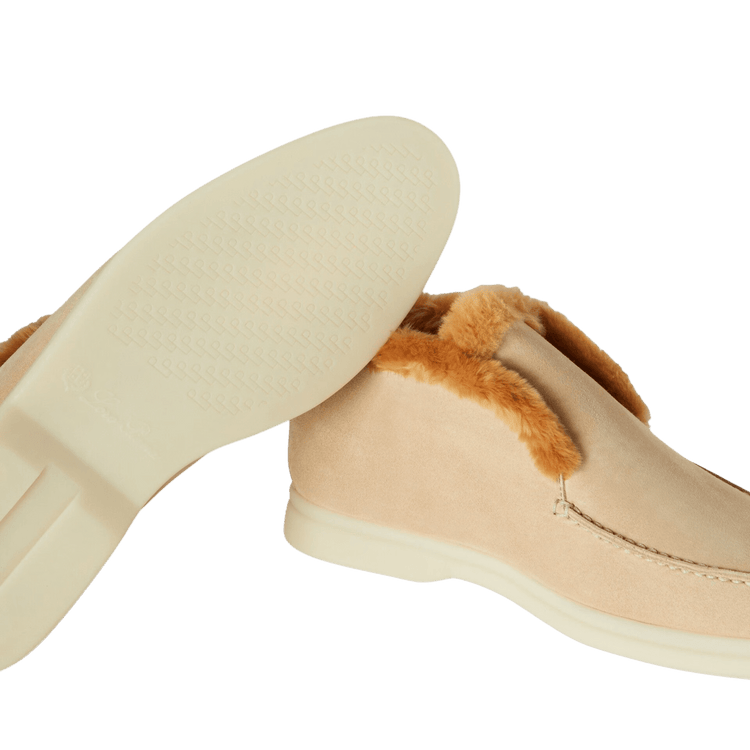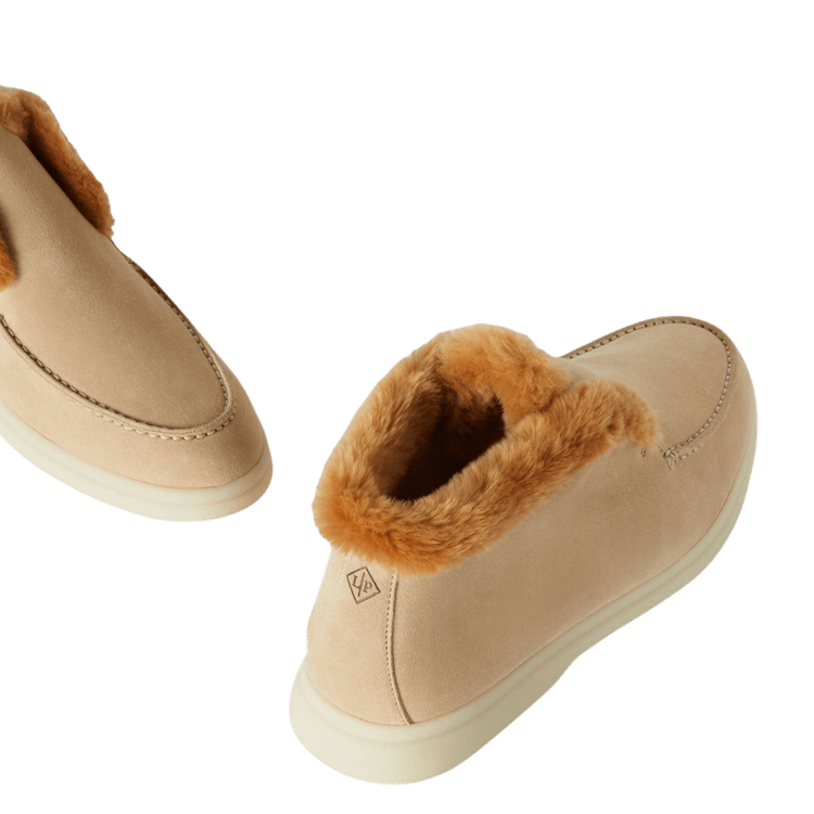 rafted from luxurious suede and lined with plush beaver fur, this elegant ankle boot offers exceptional warmth and comfort. Inspired by Loro Piana’s iconic design, it features a concealed elastic opening for effortless wear and a versatile silhouette that transitions seamlessly from city to mountain.