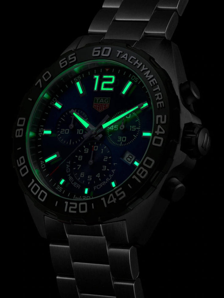 The TAG Heuer Formula 1 Chronograph features a striking blue dial and bold 43 mm design inspired by racing energy. Powered by a precision quartz movement and crafted for durability, it delivers reliable performance with confident, sport-driven style. Perfect for those who lead with ambition and embrace every challenge.