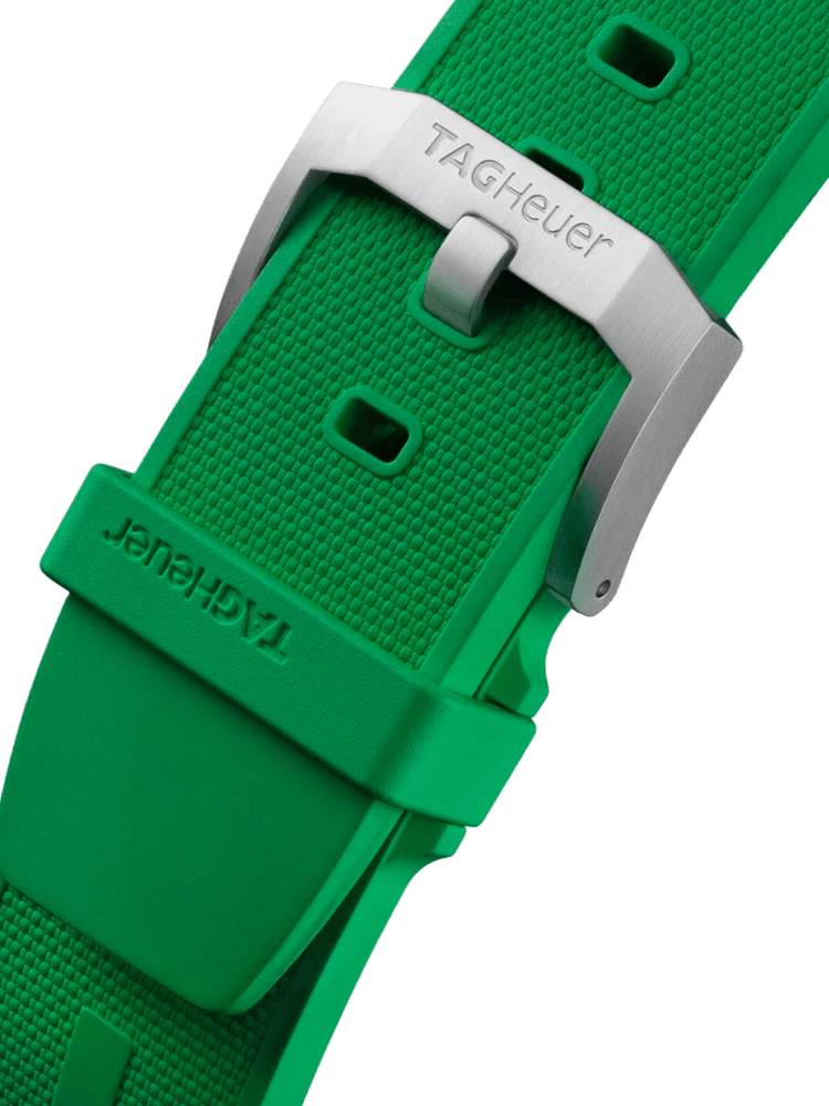 The TAG Heuer Formula 1 Chronograph features a striking green dial with matching rubber strap and bold 43 mm design inspired by racing energy. Powered by a precision quartz movement and crafted for durability, it delivers reliable performance with confident, sport-driven style. Perfect for those who lead with ambition and embrace every challenge.