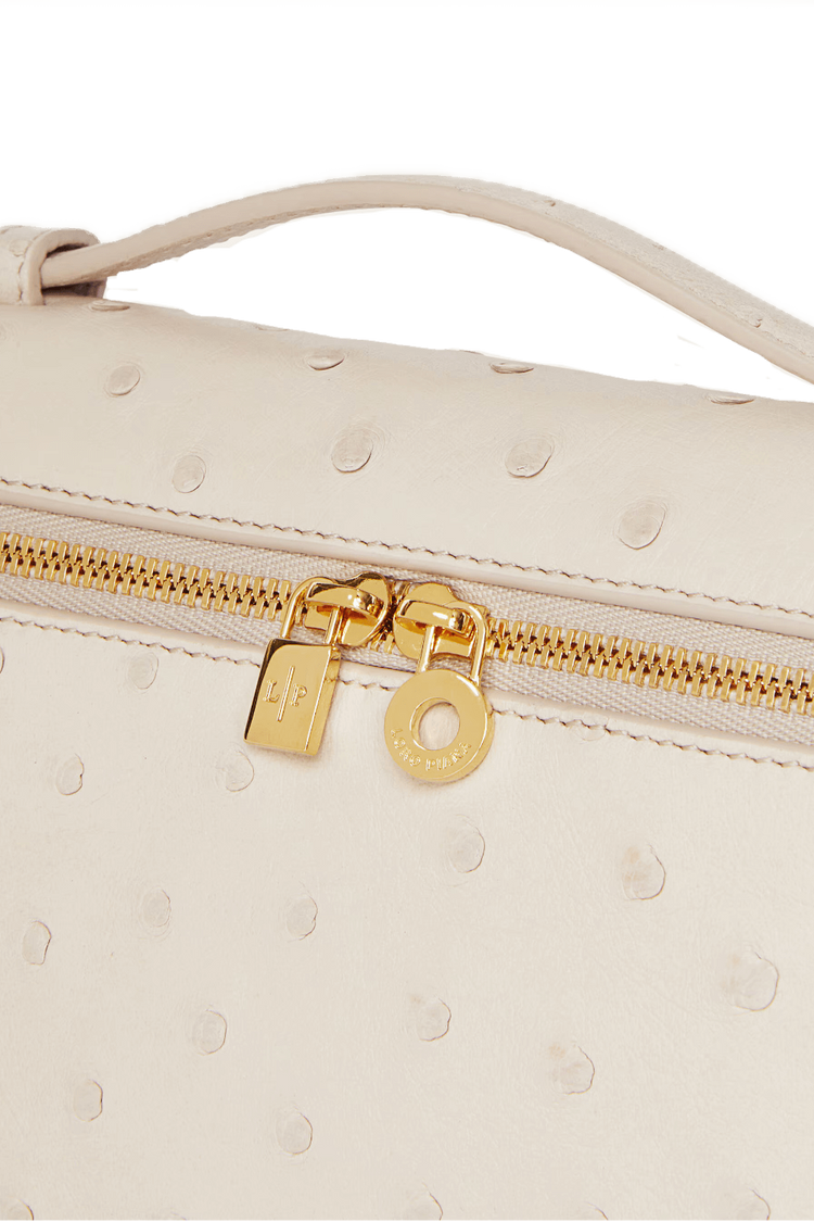 The Loro Piana Women’s Extra Pocket L19 redefines understated luxury with sumptuous ostrich leather, offering a removable crossbody strap for seamless transitions from hand-held elegance to effortless versatility. Its compact silhouette, luminous texture, and refined craftsmanship embody timeless sophistication, elevating everyday essentials with quiet, artisanal opulence.