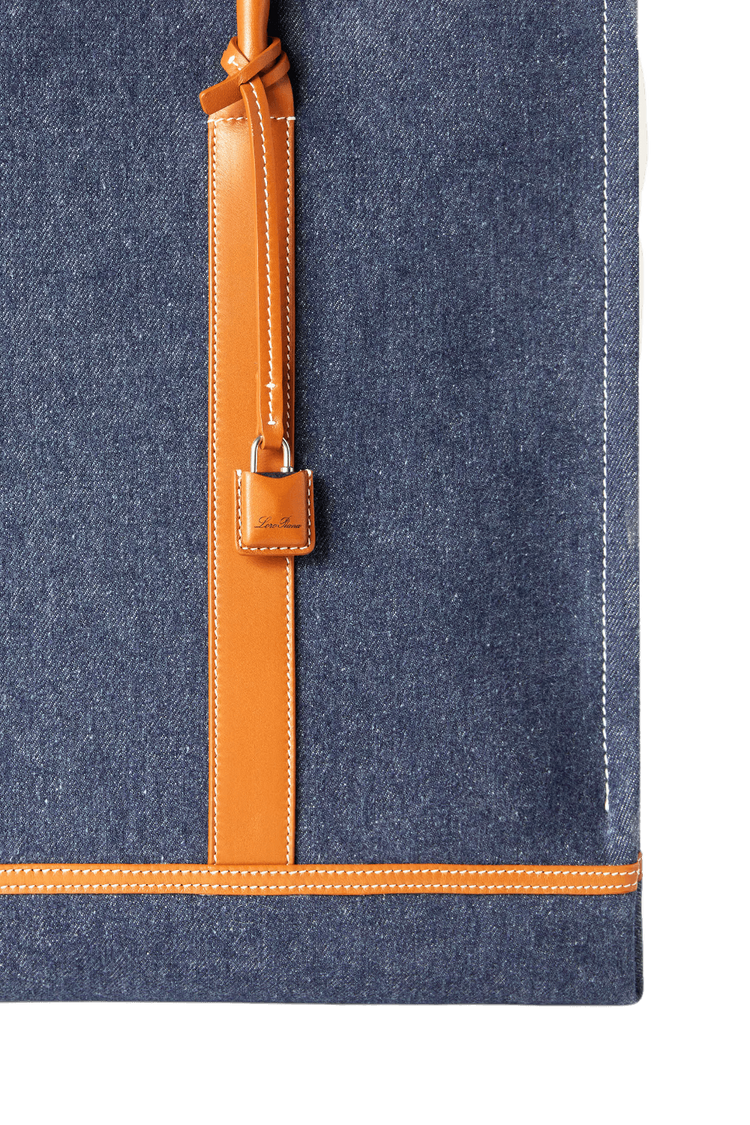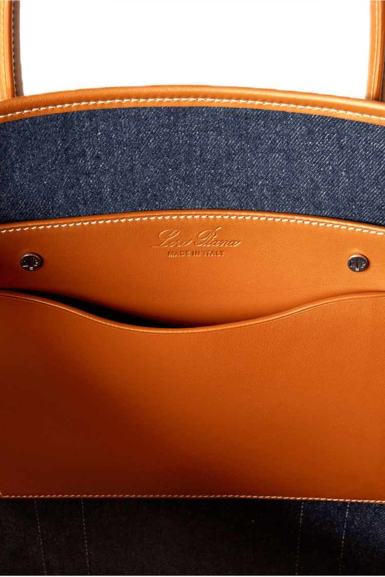 Loro Piana Men’s Small Beam Tote merges artisanal heritage with modern design, crafted from luxe cotton denim and calfskin trim inspired by textile craftsmanship’s iconic loom beam. Its expandable base, supple leather handles, and understated hardware deliver timeless versatility, blending rugged durability and refined elegance for the discerning gentleman.