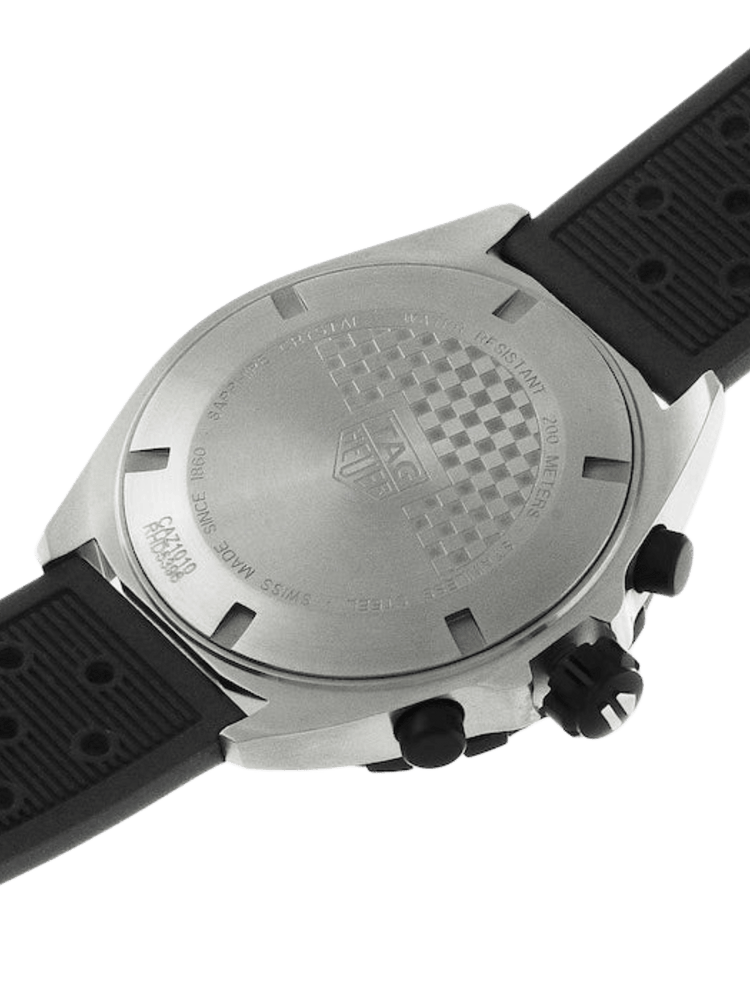 The TAG Heuer Formula 1 Quartz Chronograph 43 mm features a vivid blue dial, durable rubber strap, and precision quartz movement. With a tachymeter bezel, luminous markers, and 200 m water resistance, it delivers bold sport performance with refined everyday style.