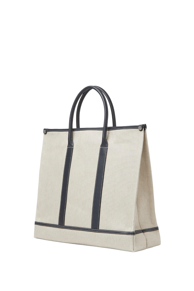 The Loro Piana Men’s Small Beam Tote unites artisanal heritage with modern versatility, crafted from durable canvas cotton-linen and accented with supple calfskin trim, featuring an expandable base inspired by textile craftsmanship. Its structured silhouette and refined details embody timeless sophistication, blending rugged durability and understated luxury for the discerning gentleman.