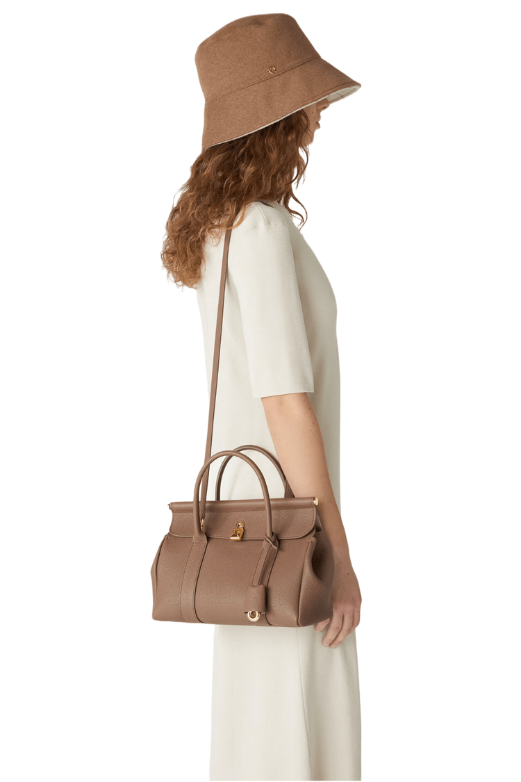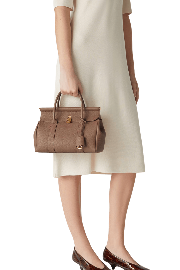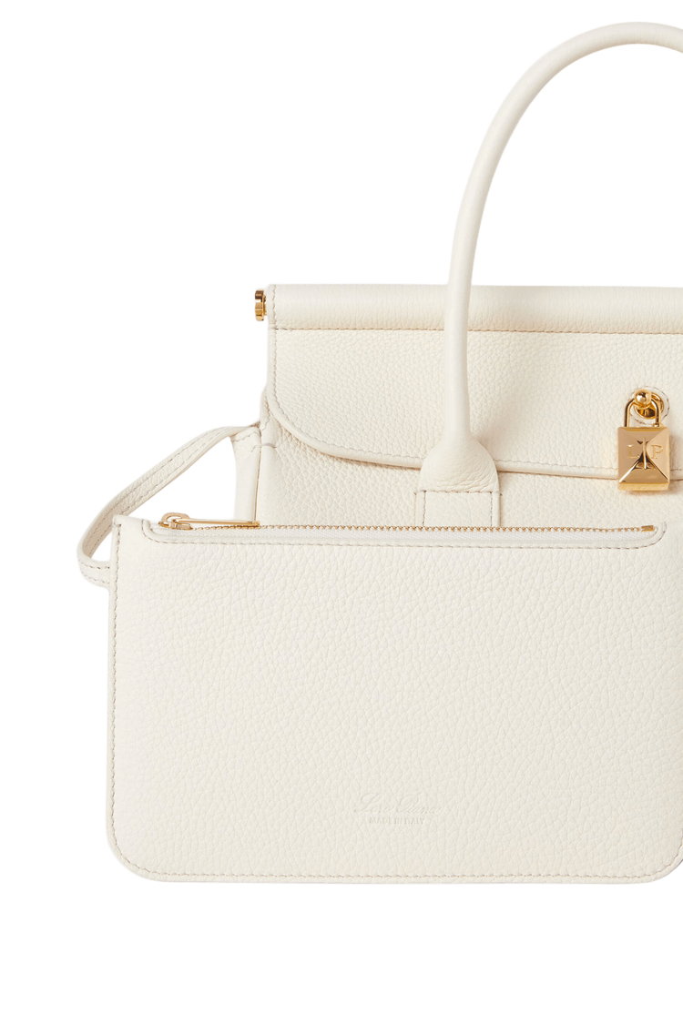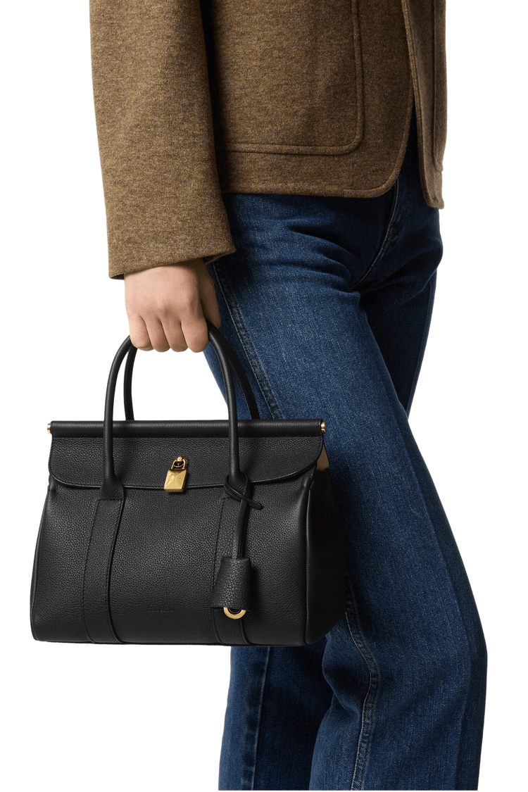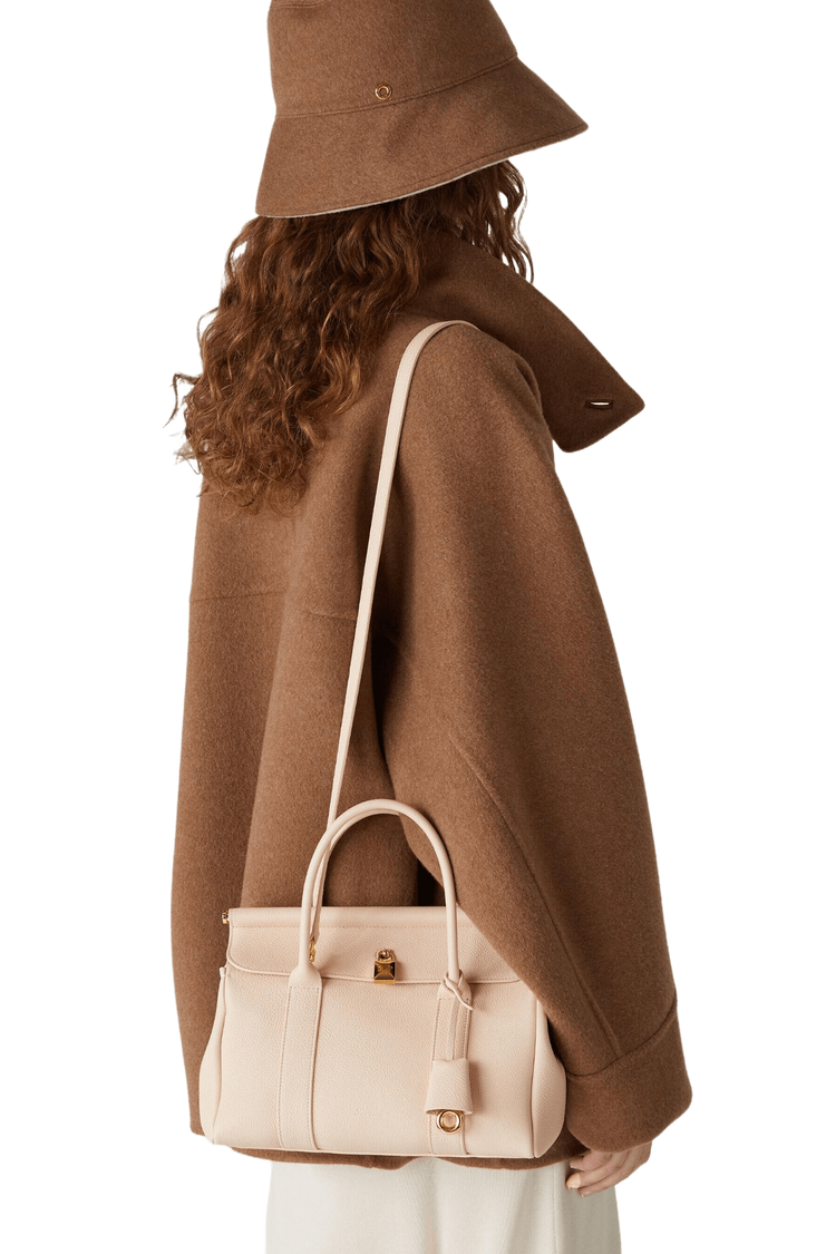 The Loro Piana Women’s Loom Bag L25 celebrates textile heritage with a sculpted metal bar evoking a weaver’s loom, crafted in featherlight fine-grain calfskin and a detachable padlock for versatile sophistication. Its supple silhouette transitions seamlessly from polished elegance to relaxed ease, embodying timeless craftsmanship and understated luxury as a modern heirloom.