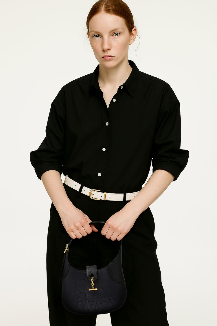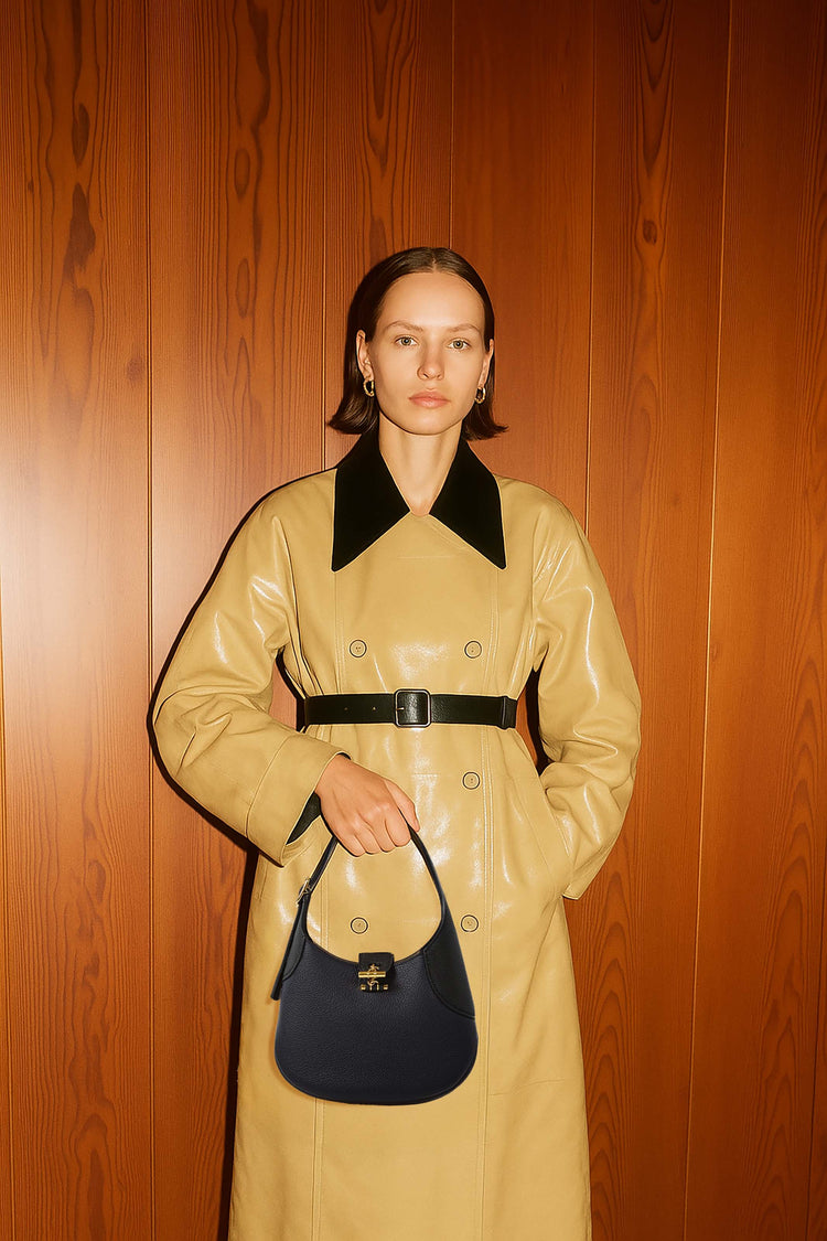The Loro Piana Women’s Mini Bobbin Bag blends textile heritage with modern refinement, crafted from supple fine-grained leather and featuring a spool-inspired design with polished toggle closure. Its adjustable shoulder strap and structured yet lightweight silhouette offer versatile sophistication, seamlessly transitioning from day to evening while embodying timeless, understated elegance.
