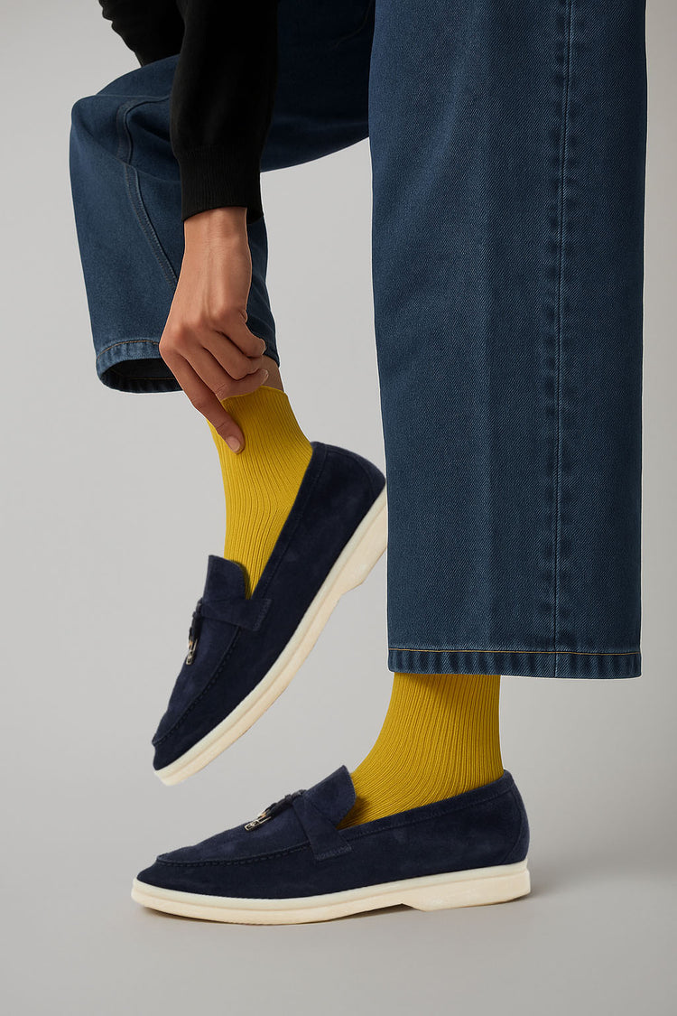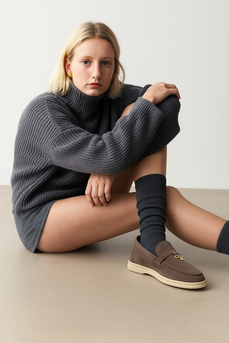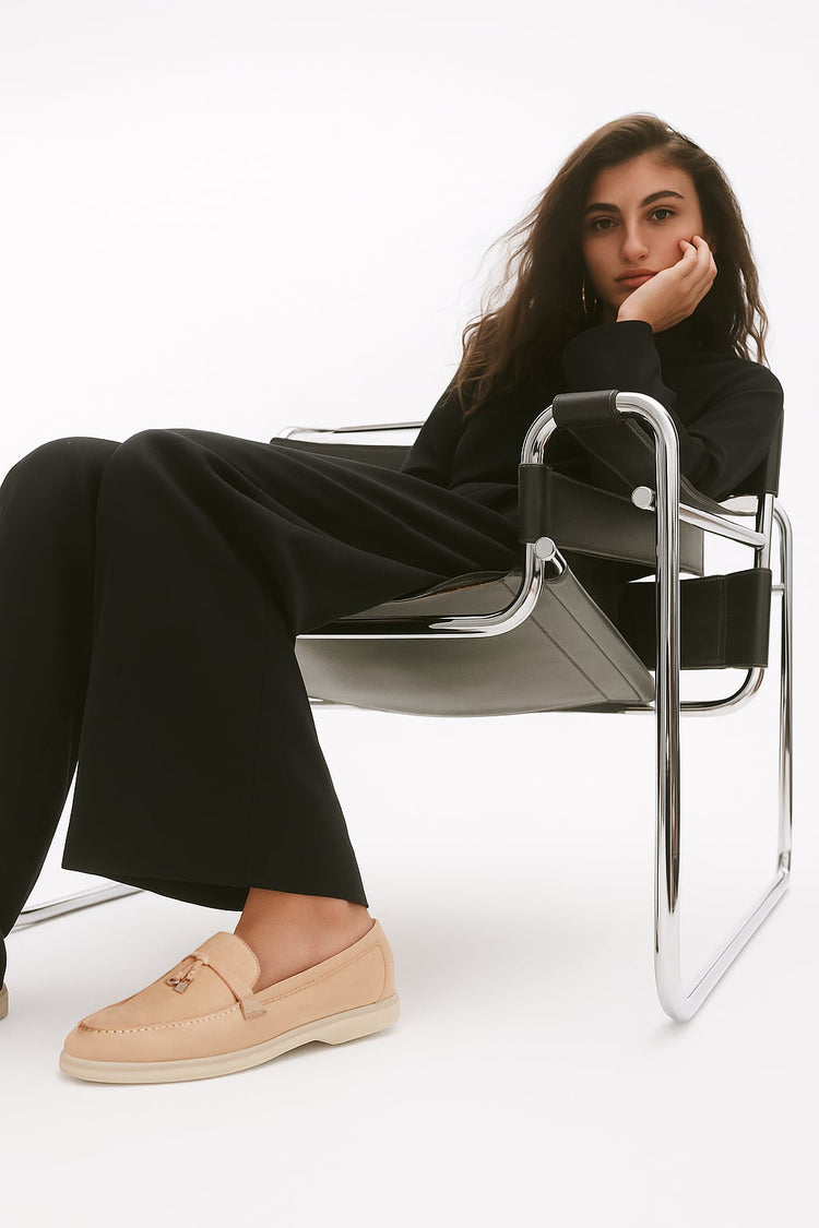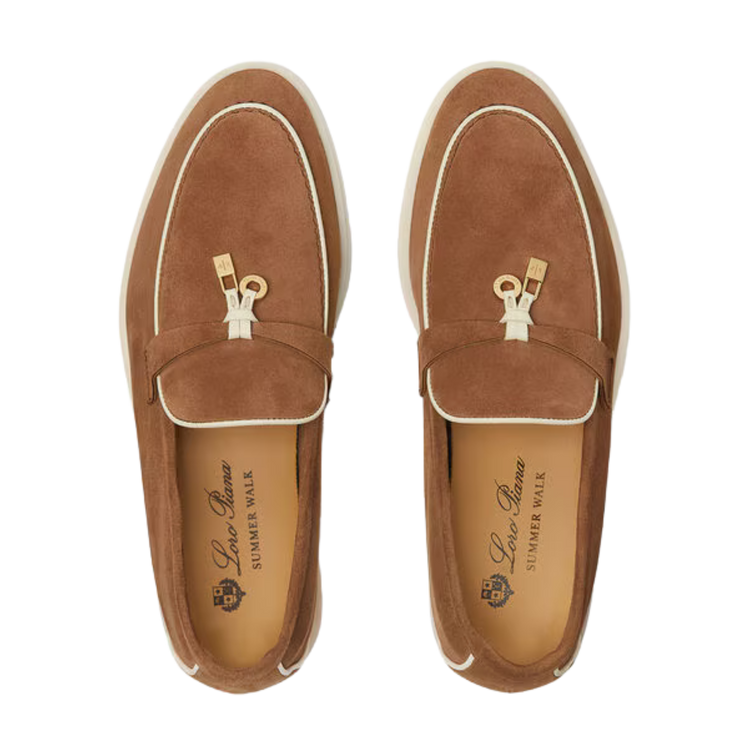<tc>Loro Piana</tc> 女士夏季 Charms Walk 乐福鞋将柔软的绒面革与耐用的橡胶鞋底和优雅的 My Charms 细节相结合,非常适合夏季海上或城市探险。