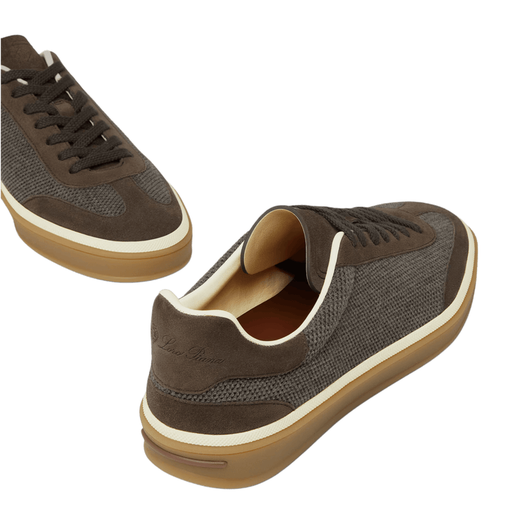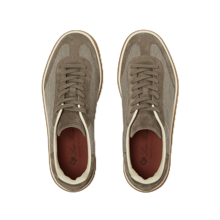 The Loro Piana Tennis Walk Sneaker reimagines vintage court style with refined Italian craftsmanship. Crafted from exclusive Pecora Nera® wool with subtle suede accents, it offers natural softness and understated luxury. Finished with a clean white base and caramel cup sole, it delivers timeless elegance and effortless versatility.