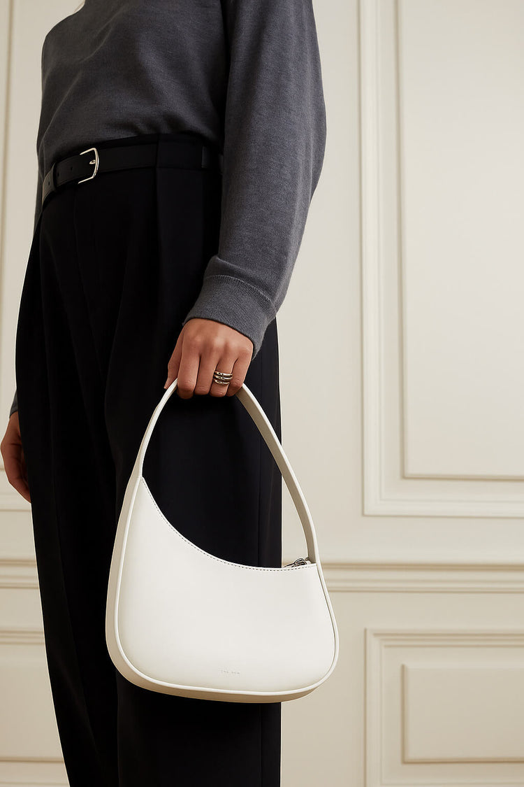 对于眼光独到的极简主义者来说, <tc>The Row</tc> 半月形皮革包袋 隽永的精致与低调的奢华,采用柔软的优质皮革精制而成,体现了品牌对低调优雅的执着追求。其雕塑般的新月造型和无标识设计使其成为 低调的专属象征,吸引那些注重精致而非浮夸的人士。这款包袋轻盈百搭,可轻松驾驭日间和晚间造型,提供 现代传家宝 对于那些通过简单和手工技艺来策划他们的遗产的人来说。