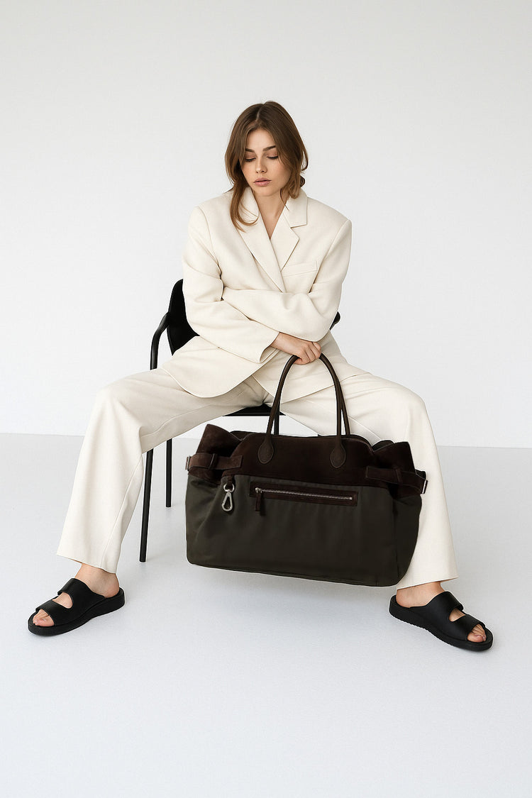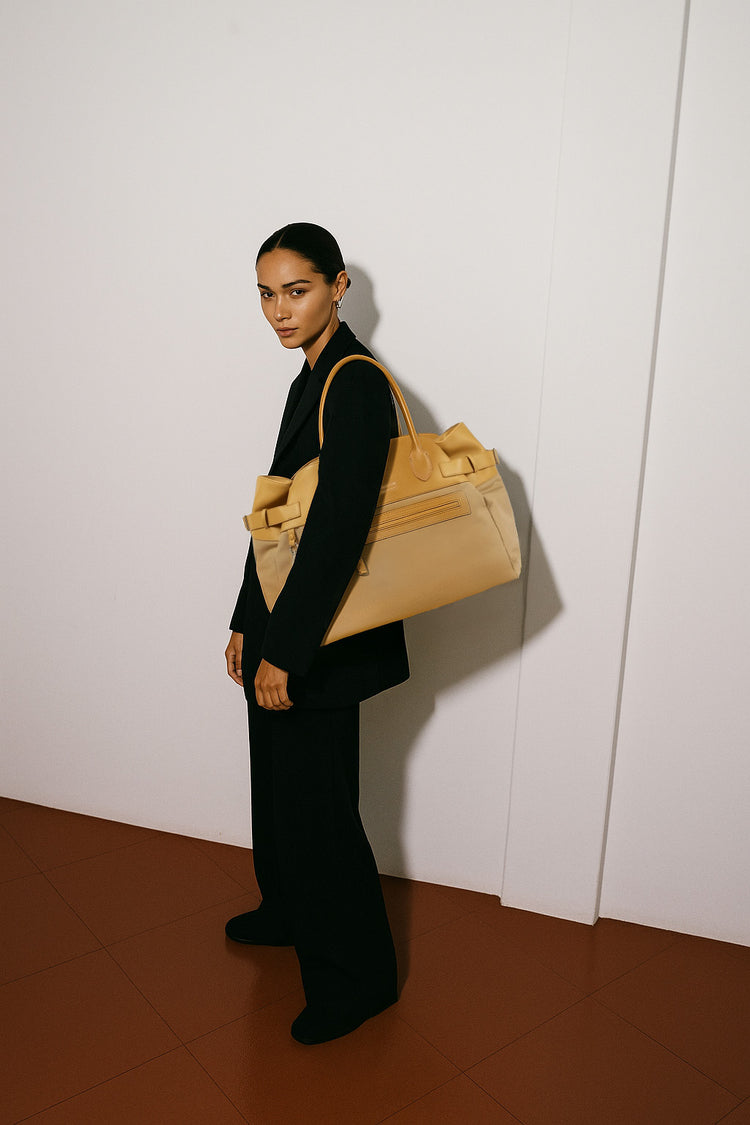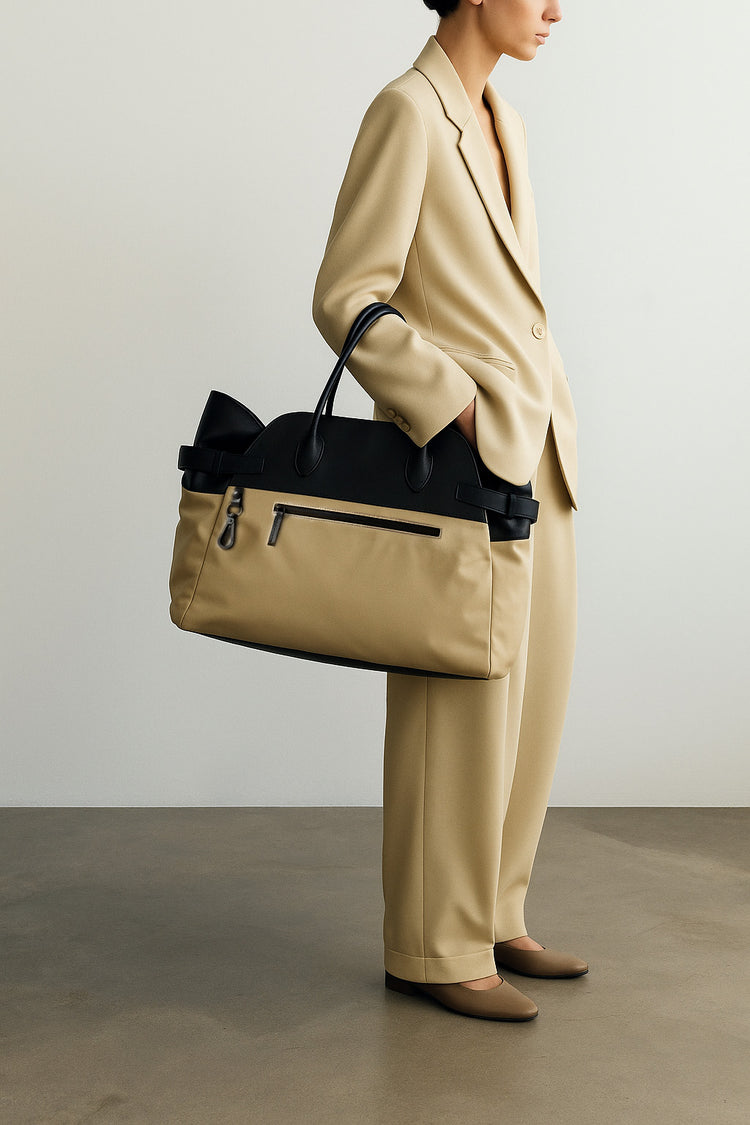 对于追求宁静奢华的鉴赏家来说, <tc>The Row</tc> Margaux 17 Inside-Out 带扣皮革帆布手提包证明了 隽永工艺与低调优雅。采用优质皮革和帆布精制而成,结构感十足的简约设计体现了品牌“精致而不浮夸”的理念。这款托特包容量宽敞,用途多样,是 低调的独家象征,吸引那些同样重视功能性和艺术性的人——这是一件注定会成为 现代传家宝 为遗产管理者。