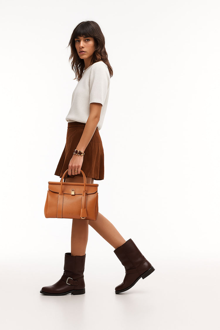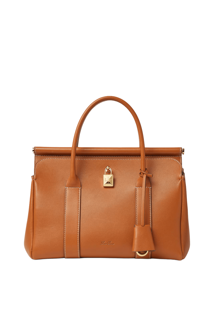 The Loro Piana Women’s Loom Bag L25 celebrates artisanal heritage with a sculpted metal bar inspired by a weaver’s loom, crafted in featherlight, tactile calfskin for understated luxury. Featuring a detachable padlock and a supple silhouette that adapts seamlessly from polished refinement to relaxed ease, it embodies timeless versatility as a modern heirloom.