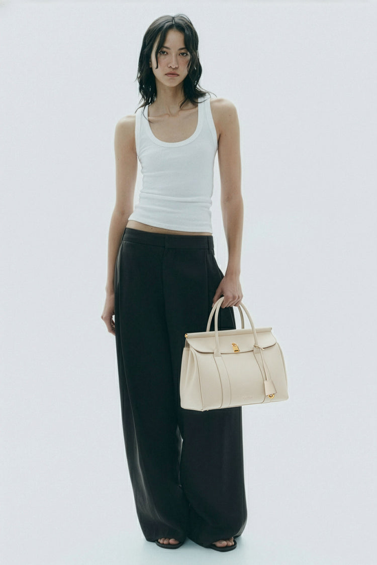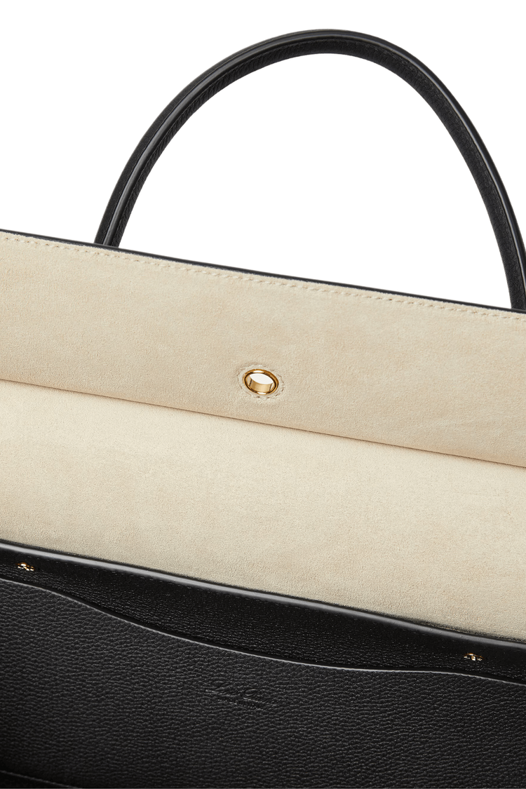 Handle this product carefully to maintain its shape - avoid overfilling it. Protect it from prolonged exposure to cosmetics, perfume, chemicals, or materials that may cause stains. Store away from direct sunlight, heat, and moisture. If the leather gets dirty or wet, gently clean the area with a soft, light-colored cotton cloth. Do not use soap or harsh solvents. For delicate details, seek professional cleaning. When storing, fold carefully in its original packaging with Loro Piana cedar balls or moth repellent, and keep in a dry, cool place.