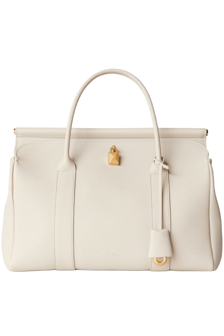 The Loro Piana Women’s Loom Bag L32 celebrates textile heritage through its artful design, featuring a loom-inspired metal bar and whisper-light, textured calfskin that blends craftsmanship with modern ease. With a detachable padlock and adaptable silhouette - stylishly worn closed or casually unfolded - it merges timeless elegance and versatile functionality for the discerning, tradition-minded wearer.