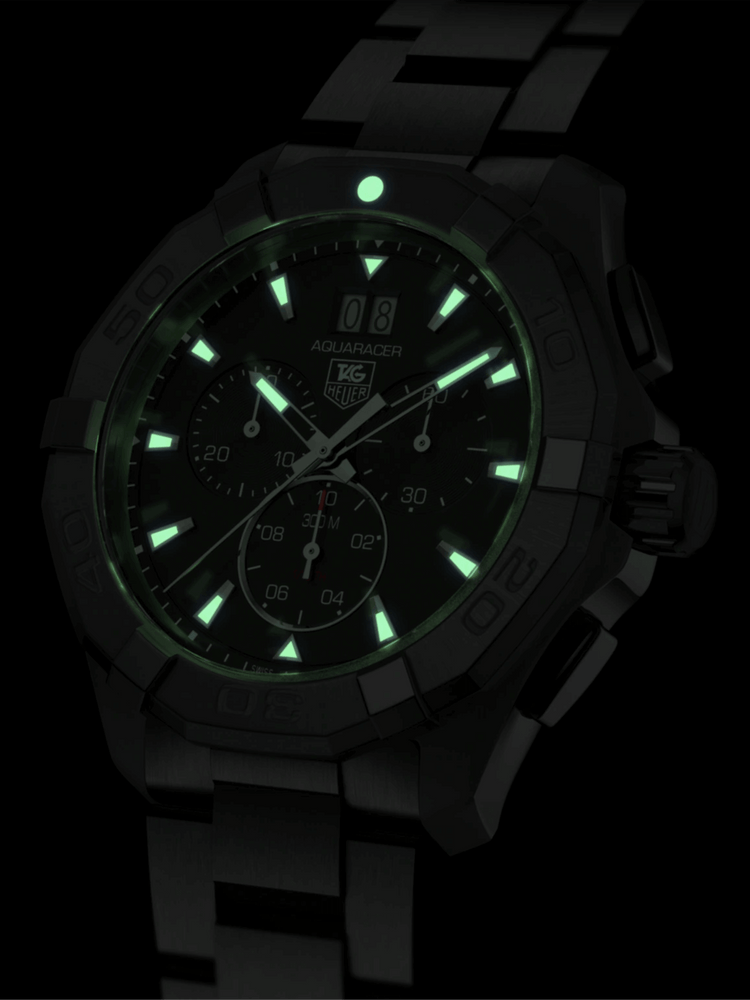 The TAG Heuer Aquaracer Chronograph features a grey dial and precision quartz movement for reliable, accurate performance. Designed with rugged durability and refined detailing, it delivers confident sporting elegance for every adventure. A versatile timepiece that balances strength, style, and everyday sophistication.